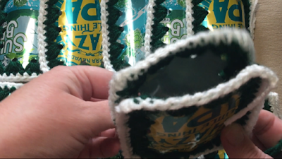 **Update! April 2022** My first ALL NEW Beer Can Hat Tutorial and video is up!! Woohoo! Many more tutorials coming, this is just the beginning! *New* 3-in-1 Beer Can Party Hat Tutorial - Part 1: The Crown !!More details and a preview video: Coming Soon! NEW *Creative* Beer Can Hat Tutorials All NEW Beer Can Party Hat Tutorials!! (Continued from Part 1 ) See Crochet Basics for stitch descriptions and abbreviations. Note: I used tall cans for my sample hat, adjustments for using regular size cans shown in [brackets]. 3. Edge the Can Labels Basically, the cans will be edged just like a granny square. 5 dc into each corner, and 3 dc into each hole along the sides. For those who prefer a written pattern, here you go: Sl st into corner hole, ch 3 (counts as 1 dc). Work 2 dc into same hole. *Work 3 dc into next hole and each hole across. Work 5 dc into corner hole. Repeat from * around label, ending with 2 dc into starting hole. Sl st...